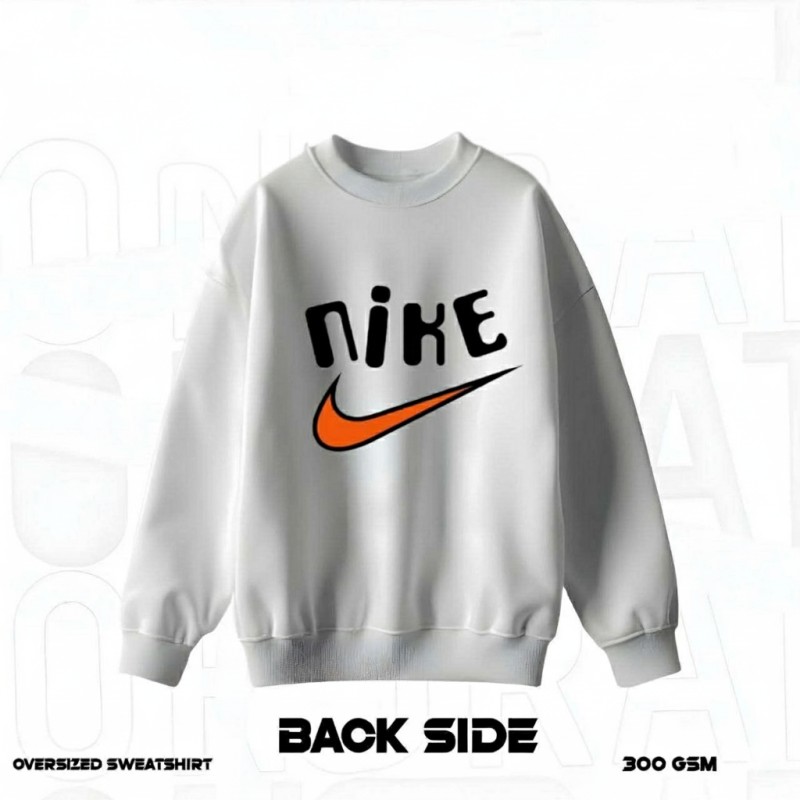 SWEAT SHIRT - Premium Oversized Nike Concept Sweatshirt - White & Orange(300 GSM)